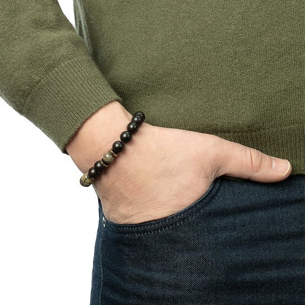 Браслет Фиделис - Сталь, Гематит, Дерево, Яшма (арт. AS-S01-10-DYsh-br)
