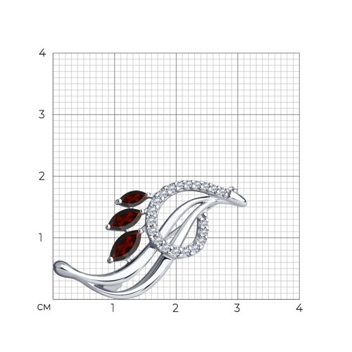 Брошь Diamant - Серебро 925, Гранат, Фианит (арт. 94-340-01048-2)