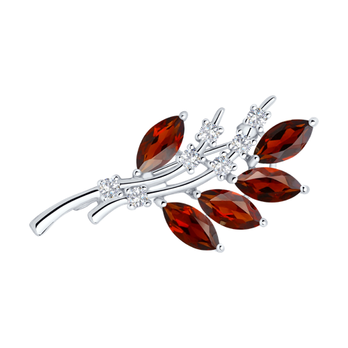 Брошь SOKOLOV - Серебро 925, Гранат, Фианит (арт. 92040010)