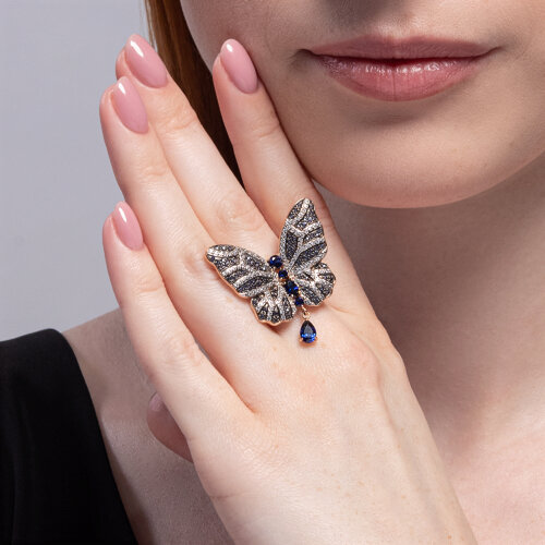 Вставка: Синтетический сапфир , Фианит