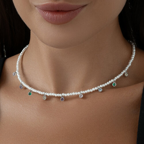 Колье SOKOLOV - Серебро 925, Жемчуг имитация, Фианит (арт. 94071068)
