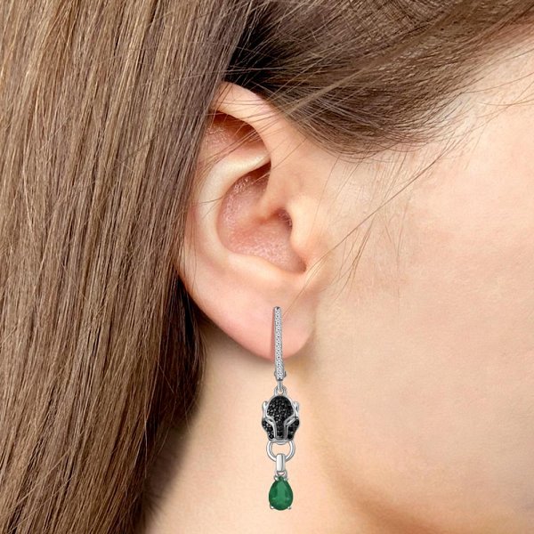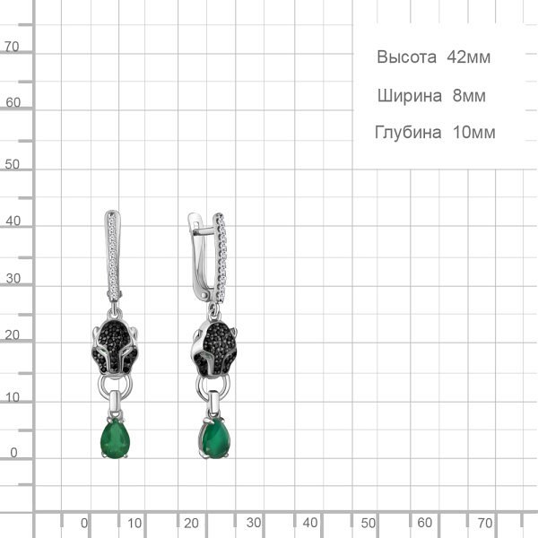 Серьги Аквамарин - Серебро 925, Агат, Синтетический изумруд, Фианит (арт. 45027709АГЧ.5)