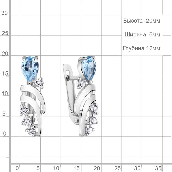 Серьги Аквамарин - Серебро 925, Топаз, Фианит (арт. 4966805А.5)