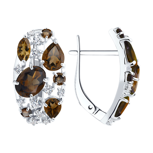 Серьги SOKOLOV - Серебро 925, Раухтопаз, Фианит (арт. 92020229)