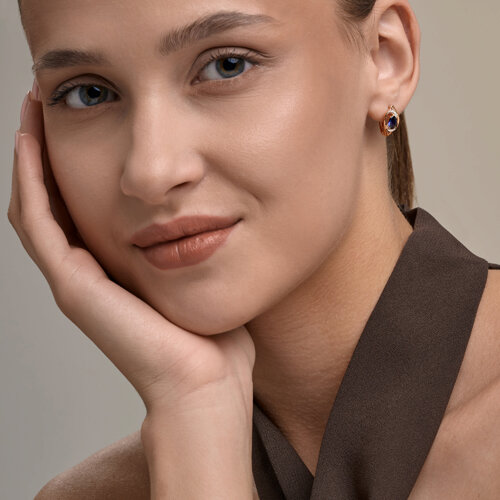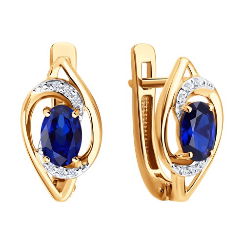 Серьги SOKOLOV - Золото 585, Синтетический сапфир , Фианит (арт. 729350)